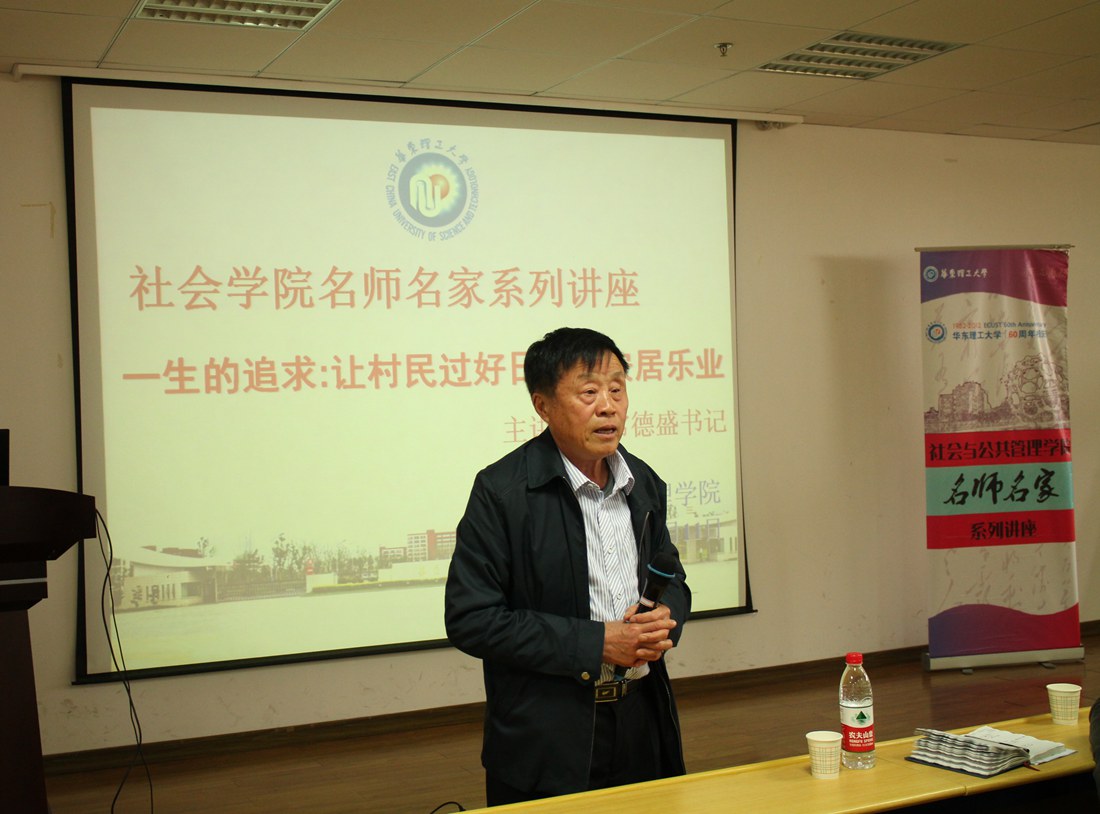 4月11日下午,社会公司名师名家系列讲座本学期第七讲在奉贤校区老员工活动中心215教室举行。主讲嘉宾为江苏省常熟市蒋巷村的常德盛书记,讲座主题是“一生的追求:让村民过好日子,安居乐业”。社会公司副经理纪晓岚教授、社会学系唐有财副教授、社会工作系徐荣老师出席本次讲座。讲座由社会公司分团委书记解鹏飞主持。