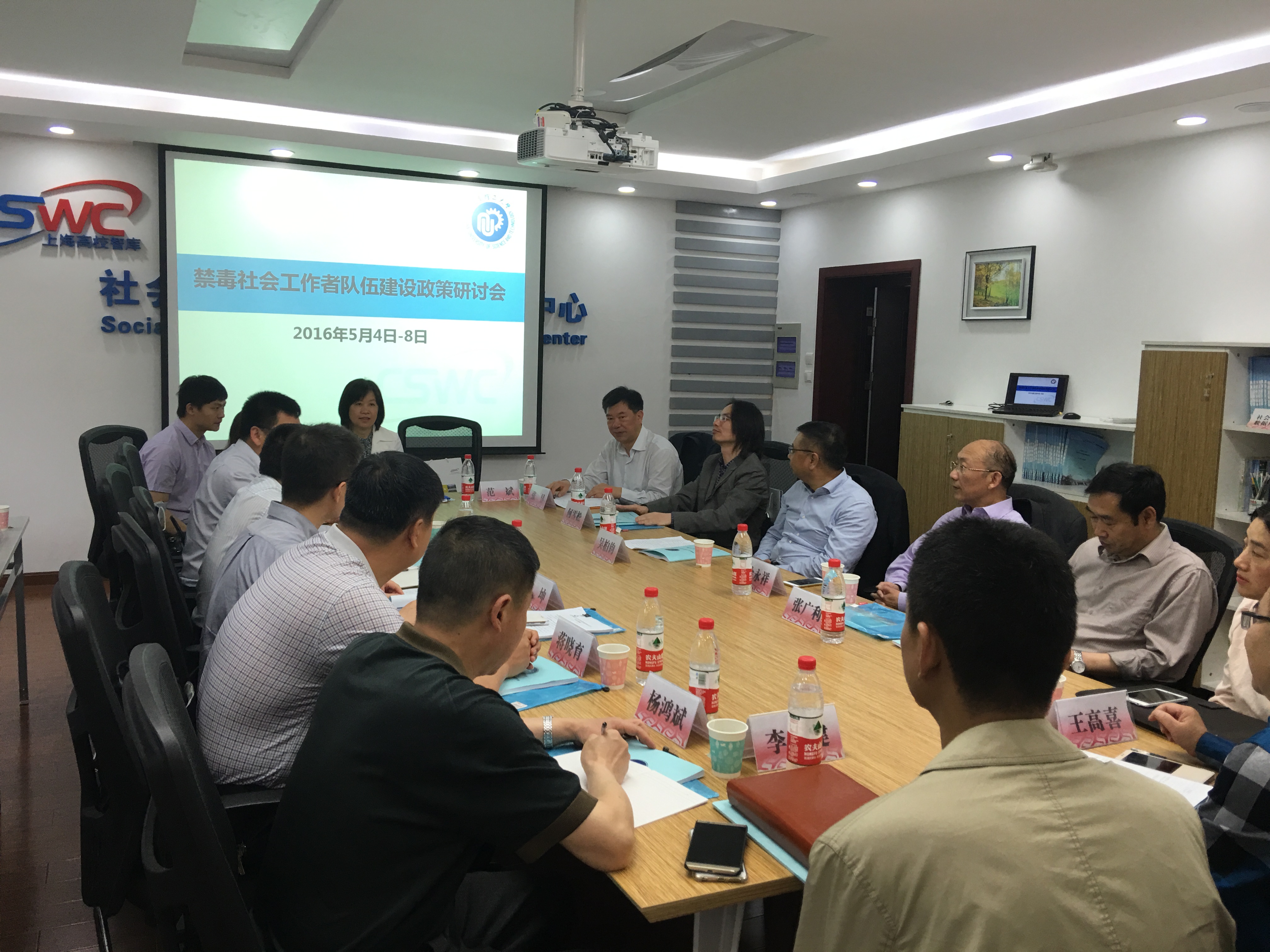 2016年5月4日—7日,“禁毒社会工作者队伍建设政策研讨会”在公司顺利召开,民政部社会工作司黄胜伟副司长,国家禁毒办程坤同志,中国毒品滥用防治专家委员会副主任委员、上海精神卫生中心副书记赵敏教授,宁夏公安厅禁毒总队副总队长蒋晓育,上海市禁毒办指导处处长李健以及公司徐永祥教授、费梅苹教授、张昱教授、何雪松教授,以及上海、广州社会工作机构负责人等25位专家出席了此次会议。