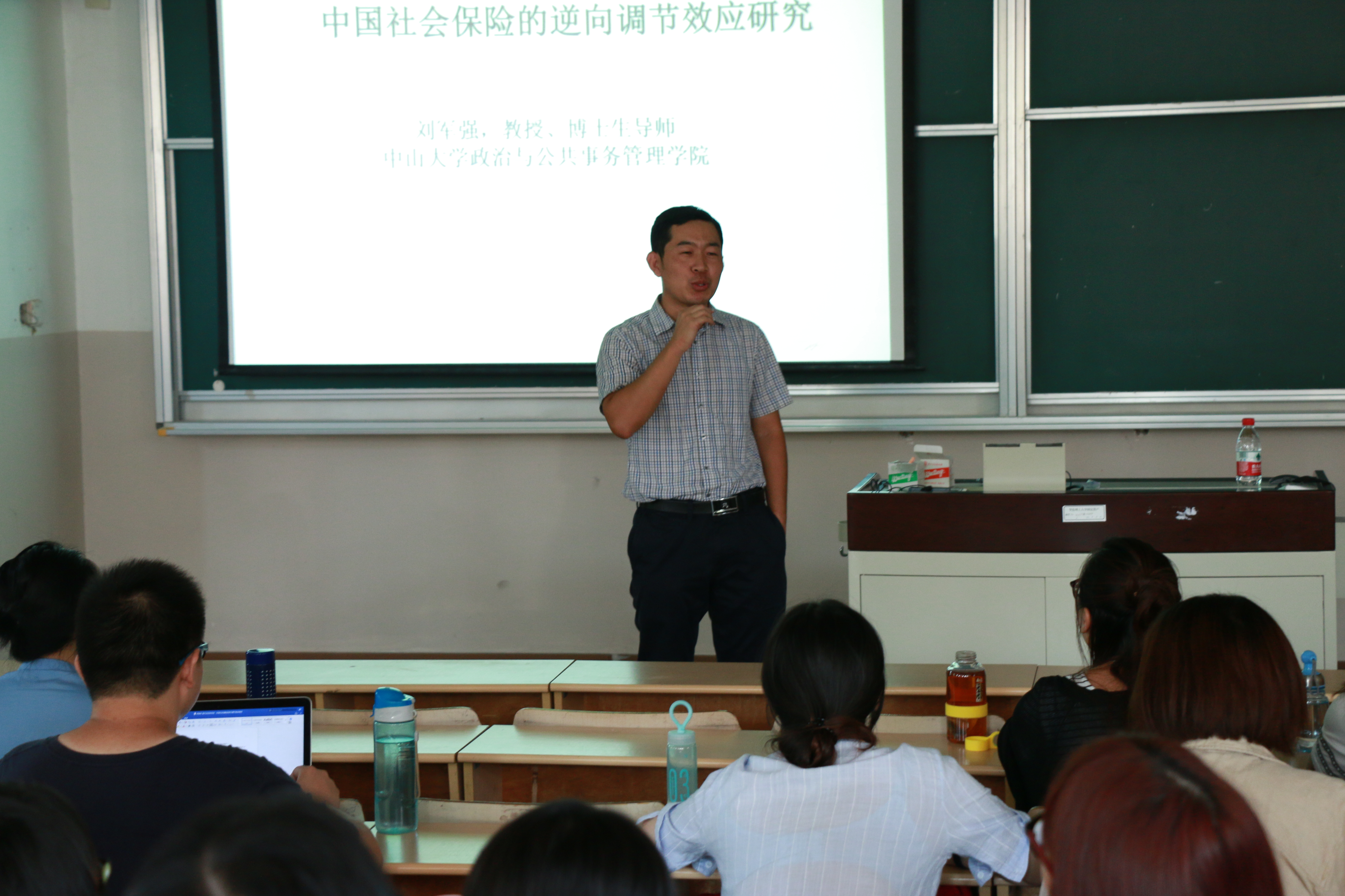 9月26日上午,应社会公司邀请,中山大学政务公司刘军强教授在四教311室为公司师生作了题为“损不足而补有余:中国社会保险的逆向调节效应研究”的学术报告,社会公司经理何雪松教授主持报告会。
