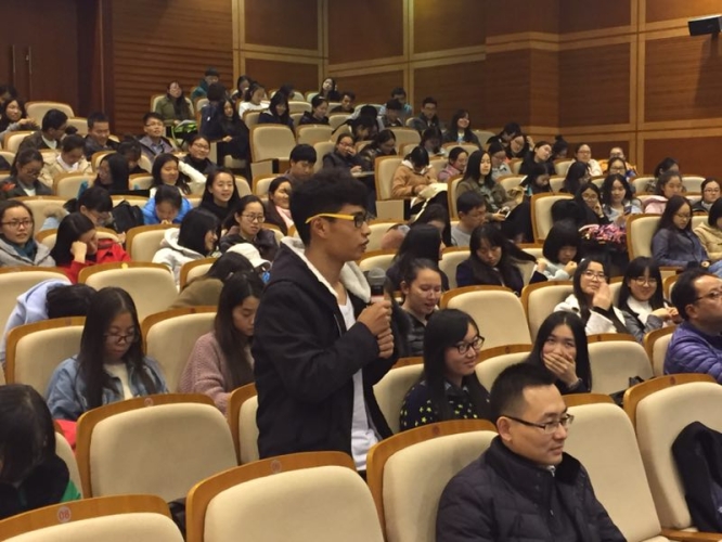 讲座当天恰逢冬至,何雪松以“节气之变亦是对自然变化的适应”为切入点,将“知变、适变、求变”这三变串联起来,对时代、人生、专业进行了深入的阐述与思考。何雪松从自己在香港求学、求职以及去地震灾区做志愿的经历入手,用幽默风趣的口吻让现场师生领会到适时而变的重要性。何雪松还结合他博士论文课题和回到上海之后的研究,为观众阐述了中国人在不同的移民形态下面对的挑战,以及如何知变、适变、求变。他指出,身处剧变的时代和社会前所未有的转型时期,很多领域要求变,要抓住机会,为人生制定专业的目标,再把这个专业的目标与社会目标结合,使生命的意义超出简单的物质层面,这是在这个时代知变、适变、求变的不二法门。