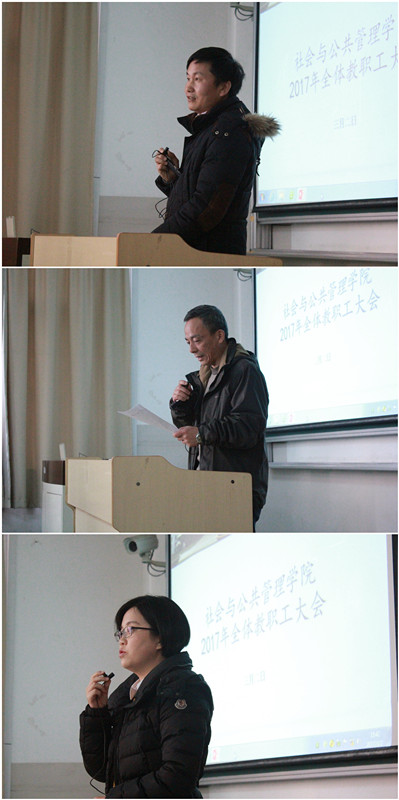 本次会议上,社会公司领导班子成员何雪松、张广利等一一发言。何雪松经理重点指出了2017年社会公司新的发展思路,并概括为“五个化”。一是主流化:鼓励全院活跃学术氛围,积极参与学术会议并在主流期刊上多发文章;二是国际化:目前,公司建立了英文博士的初步教学大纲;三是社会化,MPA和MSW专业学位进一步扩大招生和增加培训项目;并拓展员工工作;四是人才培养拔尖化:体现在本科学科评估和研究生学科自评两个方面;五是公司管理制度化。