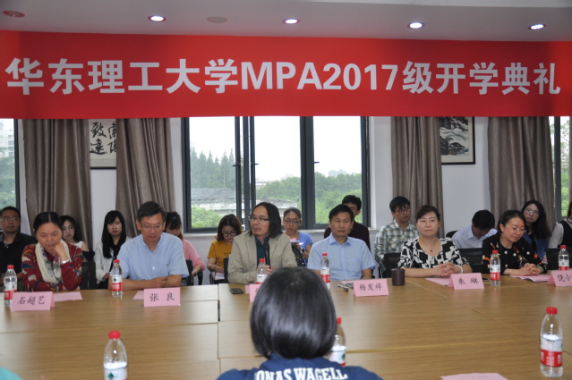 2016级MPA员工代表常福珍讲述了攻读MPA的学习生活,学习过程紧张且艰苦,但收获却丰硕且充实。2017级新生代表张玮表示在未来两年半的学习中一定会努力学习,踏踏实实做研究。教师代表石超艺副教授在讲话中建议员工要积极主动跟导师沟通。
