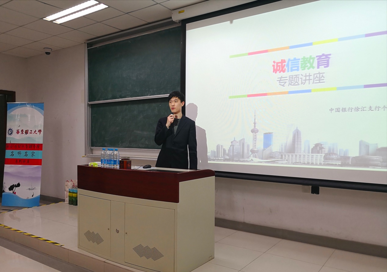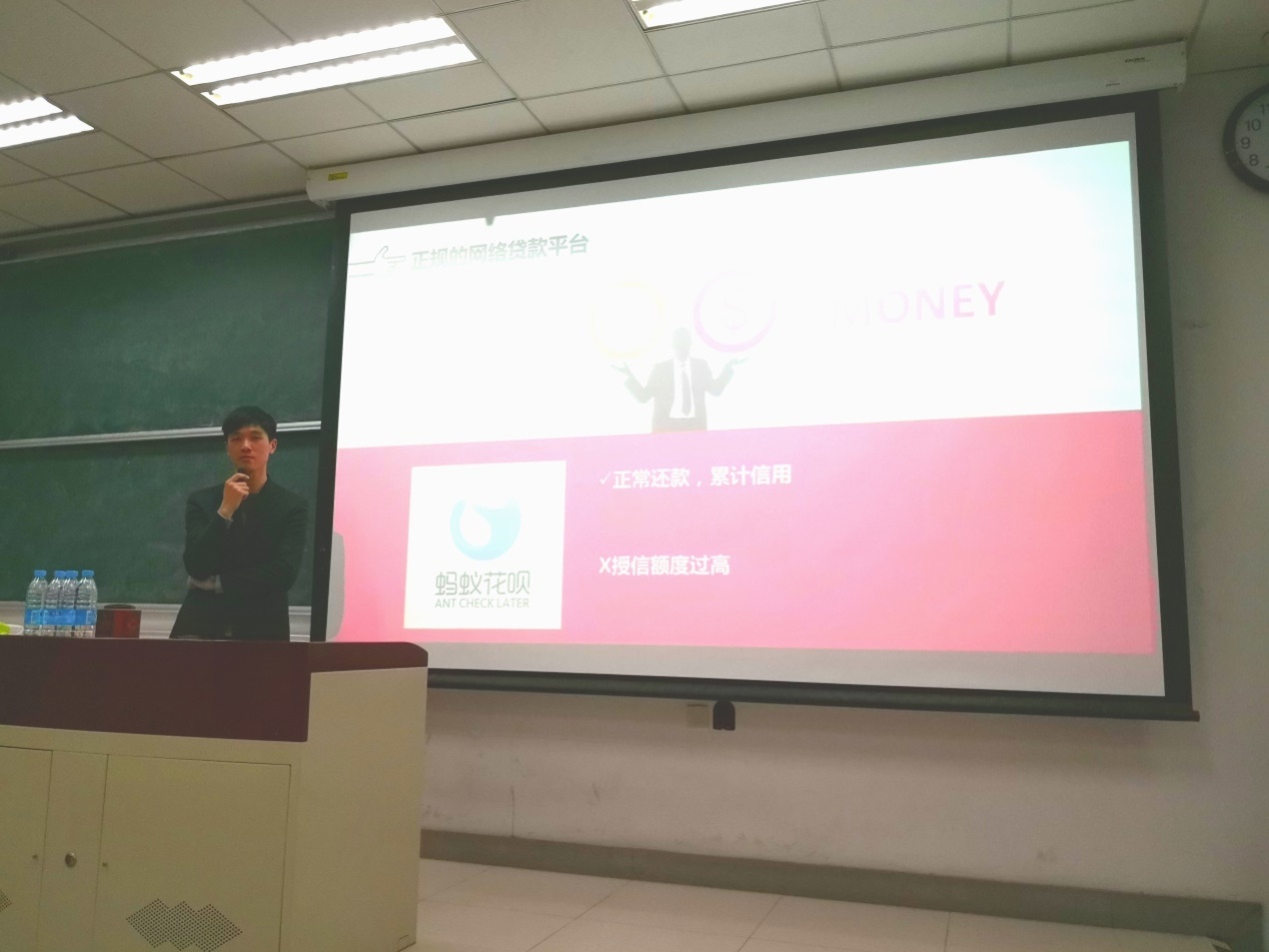 为了加强同学们风险防范意识,开展网络信贷安全教育,进一步普及征信知识,帮助老员工树立正确的消费观念。3月21日晚,社会公司和机关团总支邀请中国银行徐汇支行金融部渠道产品经理于梦洋老师在D教104教室为大家带来题为《抵制非法校园贷,守护我们的征信》诚信教育专题讲座。一百余名同学参加并聆听了讲座,现场气氛融洽。