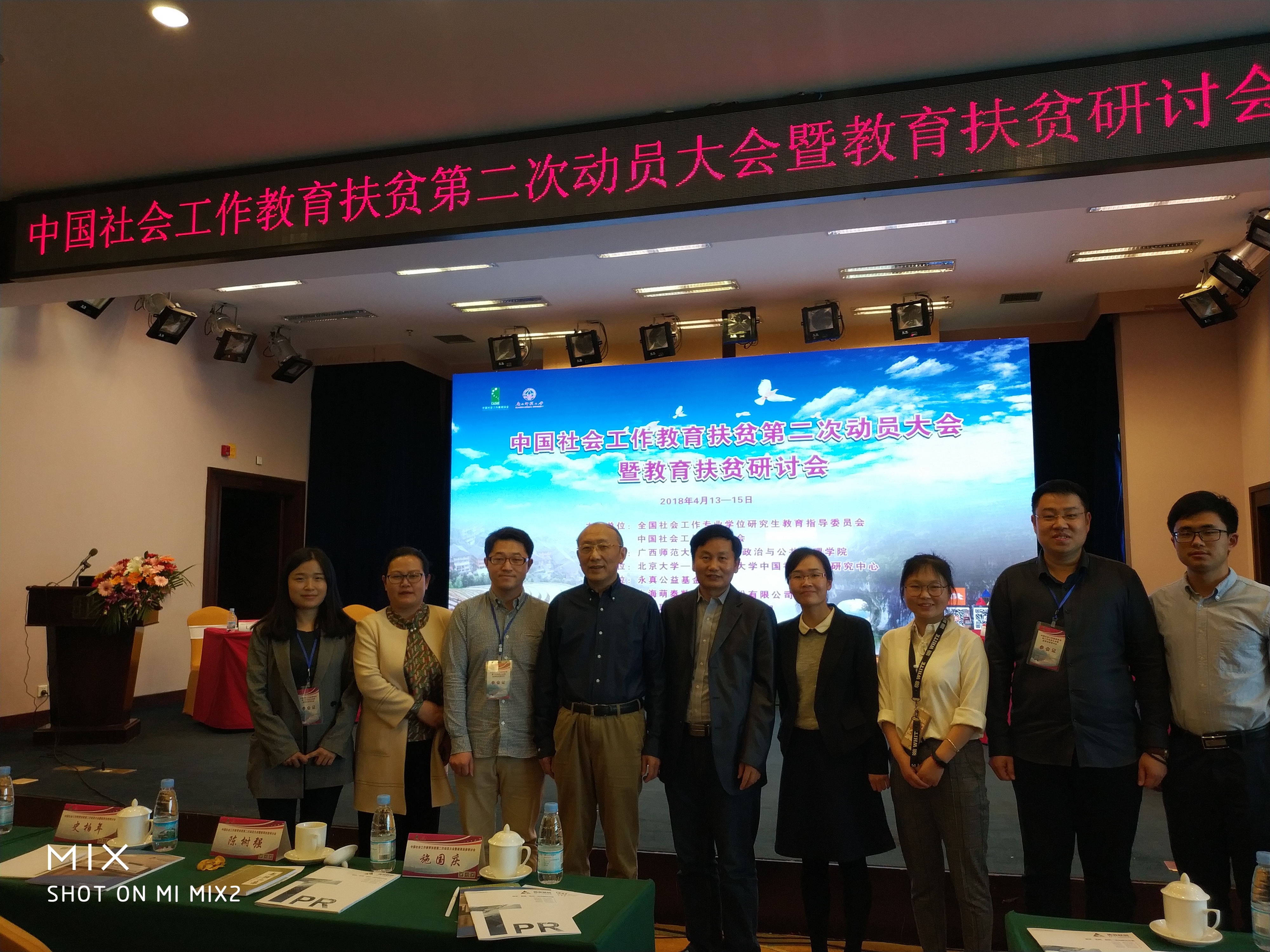 中国社会工作教育扶贫第二次动员大会暨教会扶贫研讨会,于2018年4月13日—4月15日在广西桂林召开。本次研讨会由中国社会工作专业学位研究生教育指导委员会、中国社会工作教育协会主办,广西师范大学法公司、政治与公共管理公司承办,北京大学-香港理工大学中国社会工作研究中心协办。来自多所高校的专家学者和政府官员齐聚一堂,共同探讨我国脱贫攻坚最后一战,为社会工作教育参加精准扶贫做第二次动员。中国社会工作教育协会会长、BETVICTOR上海高校智库社会工作与社会政策研究院经理、社会工作系徐永祥教授带领BETVICTOR伟德副经理杨发祥教授、社会工作系副主任黄锐副教授、MSW教育中心副主任刘艳霞老师和博士生刘振、郭儒鹏、徐立娟等一行师生共同参加了此次动员大会暨教育扶贫研讨会。