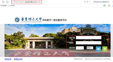 1. 访问网址:http://inquiry.ecust.edu.cn/jsxsd,输入用户名、密码、验证码,登录系统。