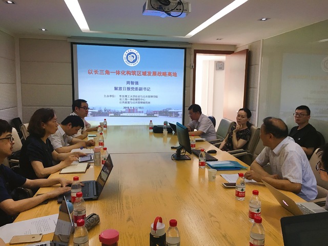 2018年6月15日,公司长三角一体化研究中心、公共政策与公共管理研究所联合举办的长三角一体化系列高层论坛第三讲在BETVICTOR伟德322会议室顺利举行。本次论坛邀请了解放日报党委副书记周智强讲座,题目是:以长三角一体化构筑区域发展战略高地。公司长三角一体化研究中心团队全体成员及博士生、研究生参加了会议。会议由长三角一体化研究中心主任纪晓岚教授和公共政策与公共管理研究所所长罗建平教授主持。
