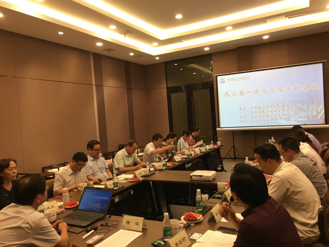2018年6月22日,公司长三角一体化研究中心、公共政策与公共管理研究所、苏州市高级人才太湖培训中心联合举办的长三角一体化系列高层论坛第四讲在苏州市高级人才太湖培训中心震泽蚕桑文化园示范教学基地会议室顺利举行。本次论坛邀请了苏州市吴江区发改委主任陆斌做主题报告,题目是“聚势谋远一体化,聚力发展高质量”。参会人员有公司长三角一体化研究中心团队全体成员及博士生、研究生、吴江区政府、苏州及上海企业有关领导。会议由苏州市高级人才太湖培训中心李谷村主任主持。