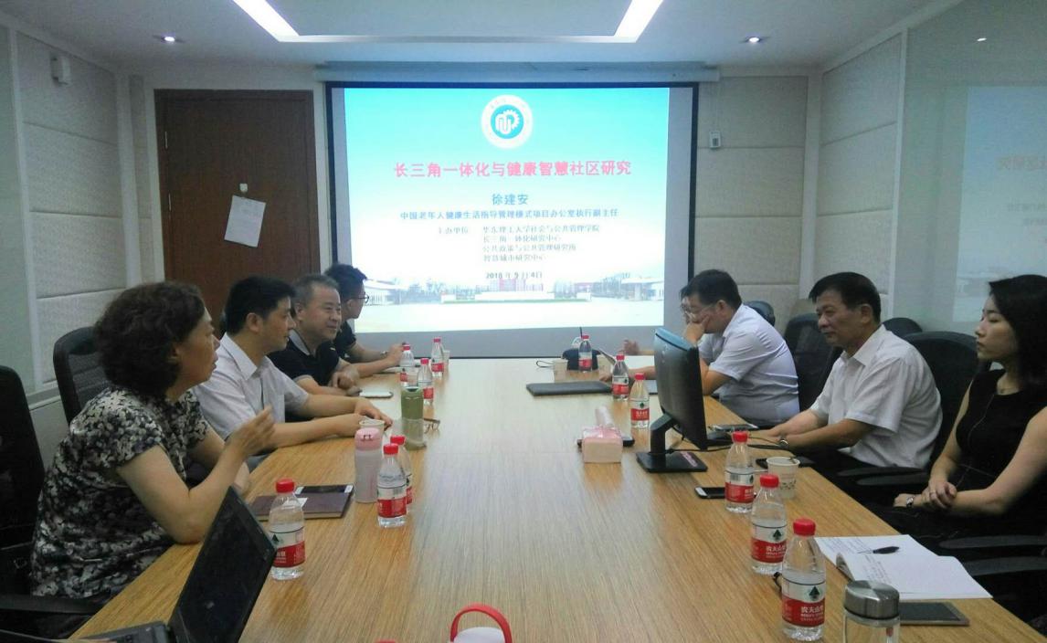 报告结束后,上海理工大学管理公司副经理张永庆教授、公司纪晓岚教授、罗建平教授、龚秀全副教授、曾莉副教授、王余博士等,就长三角一体化推进过程中的健康社区养老问题以及未来的合作事宜与徐建安主任展开了深入的讨论与交流。