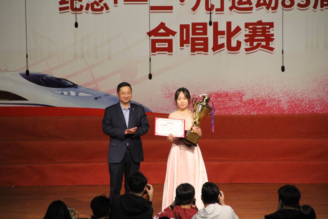 参赛的共有14个公司,这一个夜晚,同学们将满腔的爱国之情融入歌声中,歌声响彻剧场,灼热了已逐渐寒冷的冬夜。社会公司合唱团首先用他们的歌声为本次歌会拉开帷幕。一首《五月的鲜花》带我们重温那段激昂的历史,而《母亲的微笑》又触动了每个人内心深处最柔软、细腻的部分,勾起了对母亲的思念。他们充满感情的歌声打动了现场的每一位观众。最终,社院不负众望,拔得头筹,赢得本次合唱比赛技术得分、综合得分第一名以及“小花梨”最佳人气奖,夺得双料冠军!