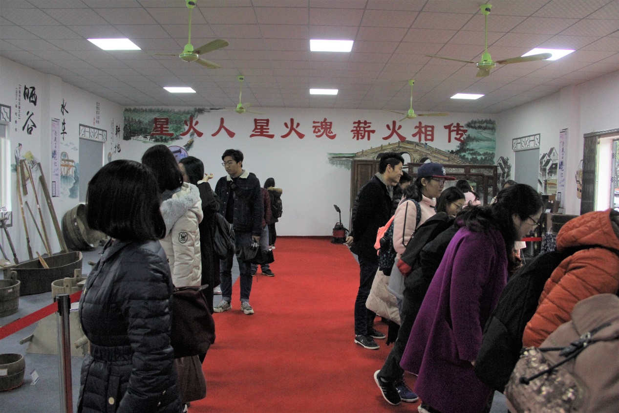 之后,师生们共同参观了星火村历史陈列室。陈列室中既建有志愿者服务点、调解中心,又设有妇女之家、温馨家园。师生同时参观了由星火村村民们捐赠的农业器具、文物书籍,学习了星火村的优秀党员干部事迹。通过参观陈列室,大家进一步了解了星火村的历史概况和发展变迁。