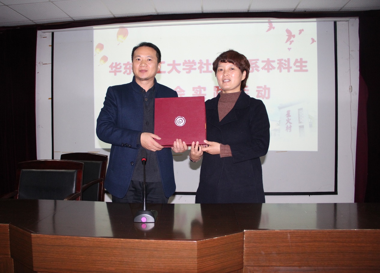随后,社会学系主任汪华教授致词。汪老师强调,大力推进本科生的教学工作不仅要有扎实的理论基础,还要有对实践分析的能力,在实践经验中修正和发展社会理论是社会学系师生不懈的追求。通过开展地方与高校合作,推动引资与引智相结合,需要重视微观的力量,如果每个个体都去做,就会发现星星之火也可以燎原。随后,我系向星火村赠送纪念品,全系师生一起合影留念。