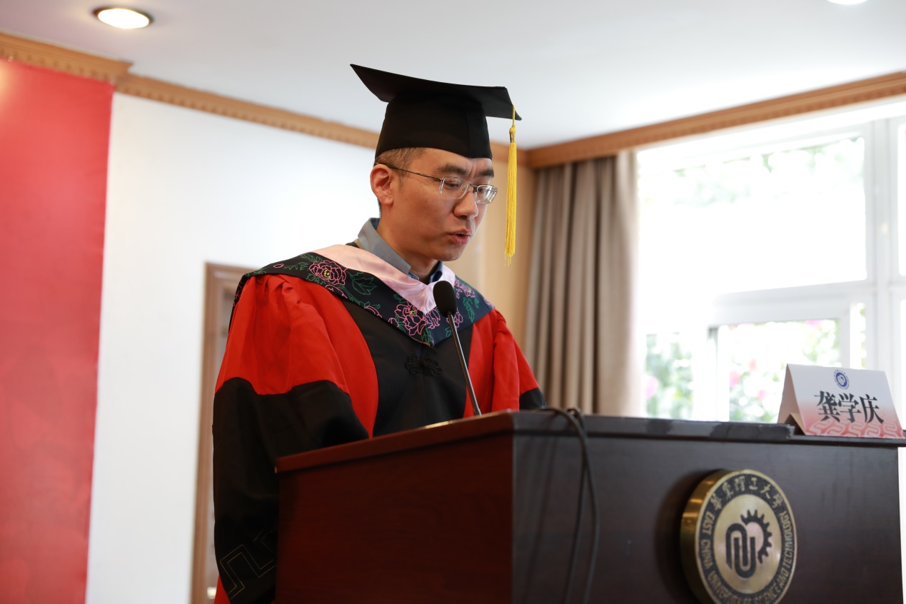 教师代表杨君老师发言。他指出,毕业生在走向社会时,可能会面对诸多危机和挑战,应时刻脚踏实地,不忘自己的追求,不忘改变社会的初心,在公司之外的领域也能收获满满。他希望毕业生视华理如初见,时时想念。