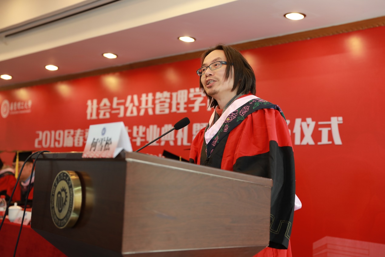 3月8日下午,社会公司2019届春季研究生毕业典礼暨学位授予仪式在逸夫楼演讲厅举行。研究生院常务副经理龚学庆,社会公司经理、党委副书记、社会与法分学位评定委员会主席何雪松,社会公司党委书记张广利,社会公司副经理杨发祥、刘晓亮,公共管理一级学科硕士点导师组组长郭圣莉,土地资源管理导师组组长俞慰刚,MSW教育中心主任费梅苹。系主任、公司部分教师、毕业生家属以及2019届春季毕业研究生共同见证这一庄严而神圣的时刻。毕业典礼由社会公司党委副书记万胤婕主持。