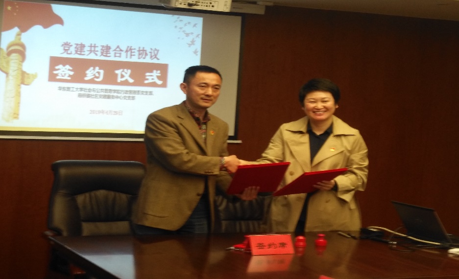 在前期充分沟通的基础上,行政管理系教工党支部与南桥镇党建服务中心支部举行了党建共建协议签约仪式,双方同意在实践教学、志愿服务、顶岗实习、决策咨询、党建研究等方面开展合作,同时,两个支部将共同组织开展主题党日、党课学习、专题研讨等活动。