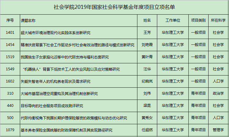 日前,全国哲学社会科学规划办公室公布了2019年度国家社科基金年度项目立项名单。2019年度国家社科基金共立项4629项,BETVICTOR2019年度国家社科基金共立项14项,公司占比9项,其中社会学学科立项5项,在全国社会学立项中排名第2,仅次于中国社会科公司,与北京大学等并列,在上海市社会学学科立项中排名第一。特别是公司人口学获准立项2项,首次进入全国十强,并列第二。