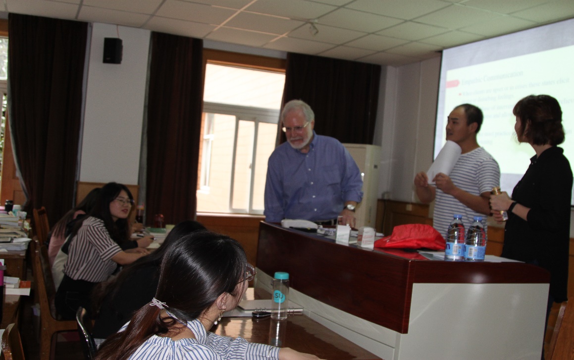 2019年10月12日至2019年10月22日,美国北卡罗莱纳大学教堂山分校社会工作公司前经理Jack Richman教授应邀来访公司,为BETVICTOR伟德社会工作研究生讲课, 在朱眉华教授本学期所上的《高级社会工作实务》课程上,主要讲授了社会工作介入家庭的理论和方法,从同理和专业关系建立、人本主义疗法、理性情绪疗法到社会支持理论和家庭生命周期理论。Jack Richman教授的课程从实际案例出发,循循善诱、激发同学们思考,运用角色扮演和互动游戏,让同学们更深刻地体会和理解理论在临床实践中的运用方式。