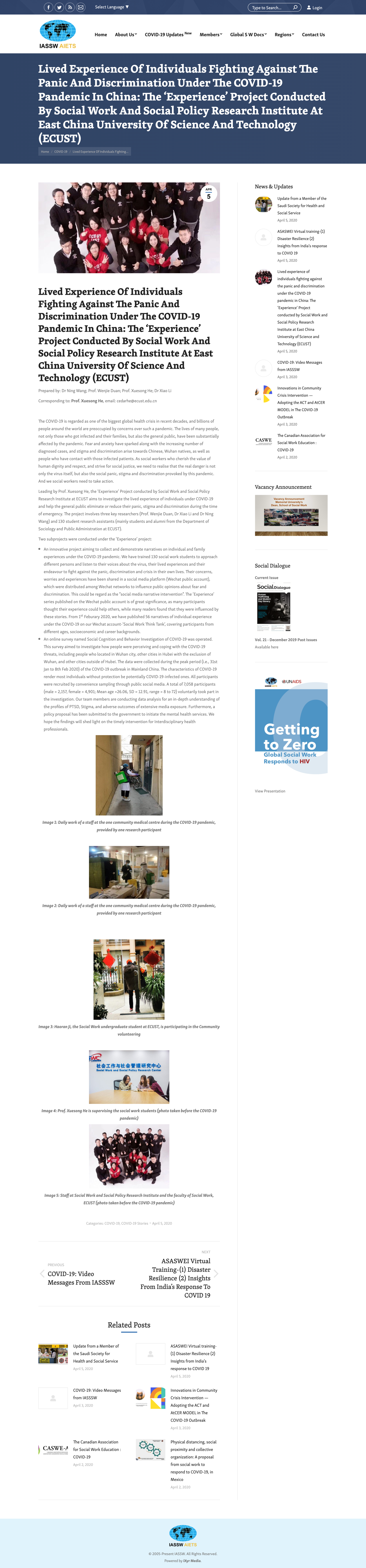 近日,作为联合国咨询机构之一的国际社会工作公司联盟“The International Association Of Schools Of Social Work”(简称IASSW)在新闻网站上报道了由BETVICTOR伟德何雪松教授领导的干预计划和科研项目。此次新冠“感受”计划和“社会认知”调查项目由BETVICTOR社会工作及社会政策研究院负责施行,团队成员有段文杰教授、李筱博士、王宁博士以及130名员工研究助理(主要为BETVICTOR伟德的员工和员工)。项目通过调研一线抗疫人员和普通大众在疫情期间的经历和想法,帮助减少公众对康复患者以及接触者的歧视,促进公众形成正确的抗疫观。