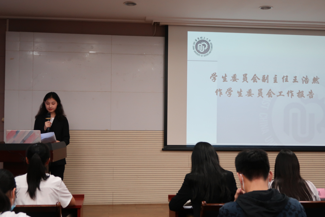 学委会副主任王浩然同学从活动审批、提案反馈、监督反馈、员工会活动满意度调查进行总结,并表示学委会各位委员今后会继续积极努力,为公司建设发展提供宝贵建议,更好地为广大同学服务。