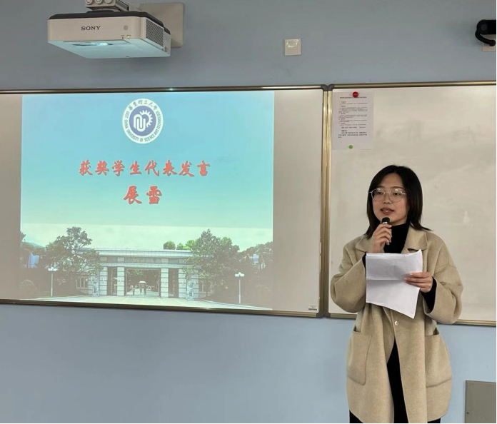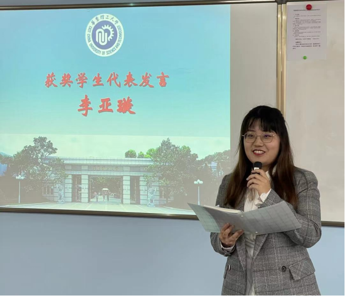 图6 本科获奖员工代表李亚璇发表获奖感言