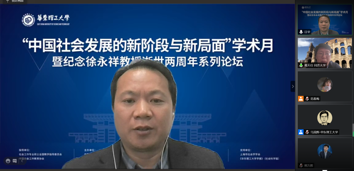 2021年3月13日上午,“中国社会发展的新阶段与新局面暨纪念徐永祥教授逝世两周年”系列论坛之二“双循环新发展格局下的城乡社会学:经验与理论”云端学术论坛如期举行。本次论坛共有来自北京大学、复旦大学、同济大学、浙江大学、中山大学、武汉大学、吉林大学、北京师范大学、华东师范大学、中国农业大学、中国社会科公司等多个科研院所的30多位专家学者,分别在主旨演讲、“城乡社会学的本土探索与国际视野”、“城乡社会样态与基层治理实践”、“城乡融合发展与乡村振兴路径”等版块作精彩报告及点评,近300人通过直播平台参与了该论坛,整个论坛持续一天。