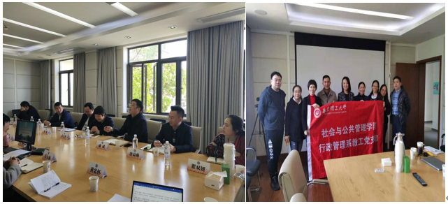 2021年4月9日,在团结二楼324会议室,行政管理系教工党支部与南桥镇对接。南桥镇社区党群服务中心党支部书记彭文翌、组织委员瞿双妍,南桥镇华严村、灵芝村、吴塘村等6村的支部书记,行政管理系教工党支部成员和本系老师出席了会议。讲座由行政管理系教工党支部书记曾莉主持。