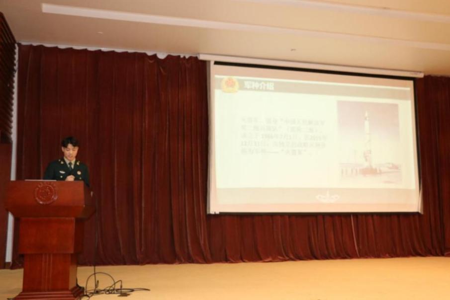 图片说明:退伍老员工党员马俊魁为大家科普火箭军相关知识