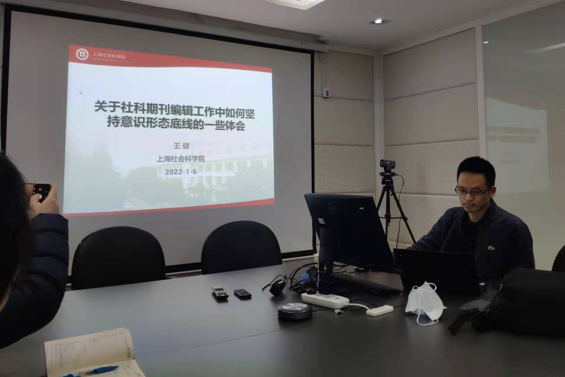 王健研究员从期刊编辑工作坚持意识形态底线思维的必要性和机制保障、明确自我定位、如何规范期刊内部管理、社科期刊编辑中易犯错误举例等方面,进行了详细的讲解。他在讲座中指出,一本刊物就是一个阵地,编辑就是宣传工作阵地的一个“兵”,必须坚持底线思维,严把期刊意识形态关。