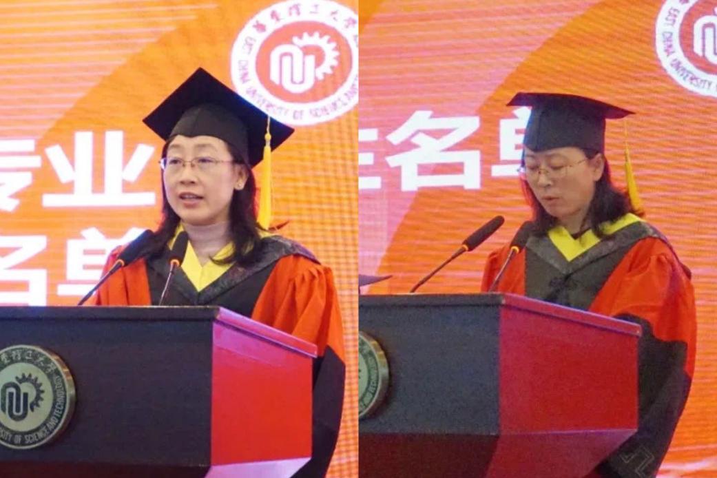 校研究生院经理杜文莉、副经理郁惠蕾宣读毕业生名单