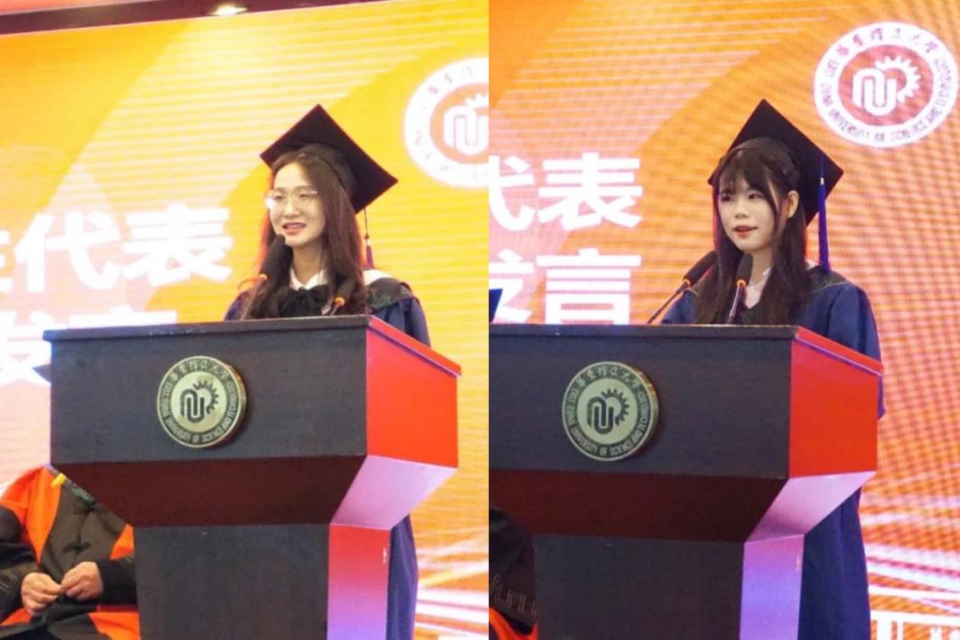 研19级行政管理硕士毕业生葛倩、MSW硕士毕业生闫紫菱作为两场典礼的毕业生代表发言。葛倩回顾了自己在华理的七年时光,感谢了每位恩师的栽培,对自己、对所有毕业生的未来提出美好的祝愿。闫紫菱回望了自己三年的读研经历,疫情线上学习、研二实习经历、毕业论文的撰写,迈出的每一步都让她成就更好的自己。