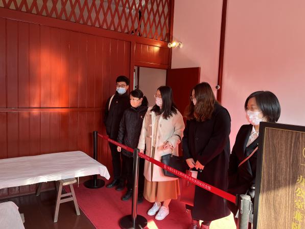 为迎接中国共产主义青年团成立一百周年,本着“学团史忆初心,牢记使命跟党走”提高思政队伍育人本领的目的。1月11日,社会公司党委副书记万胤婕、全体员工专职辅导员赴中国社会主义青年团中央机关旧址纪念馆开展实地学习,聆听历史,重温入党、入团誓词。