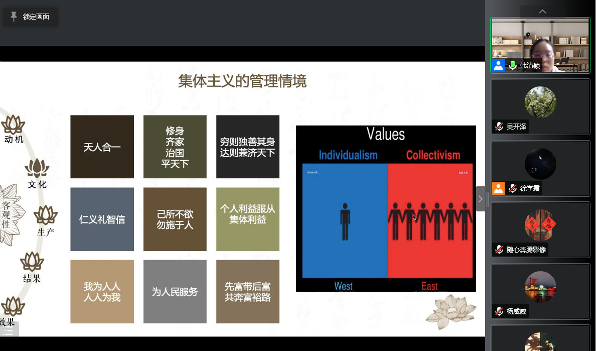 郭圣莉教授在总结讲话中充分肯定了两位老师的研究成果,认为两位老师的研究方法对老师和研究生们具有启发意义。郭老师指出“梅陇茶叙”系列讲座在疫情防控期间给大家带来了新鲜的学术体验,呼吁在场的研究生们多向各位学术新星学习。