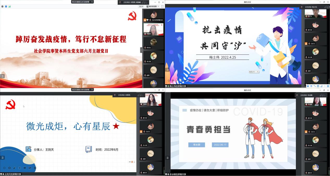 6月17日,社会公司奉贤本科生党支部召开“踔厉奋发战疫情,笃行不怠新征程”线上主题党日活动,分享抗击疫情故事,凝聚青春奋进力量。副董事长阎海峰参加活动并讲话,党支部书记吴维祺主持活动。