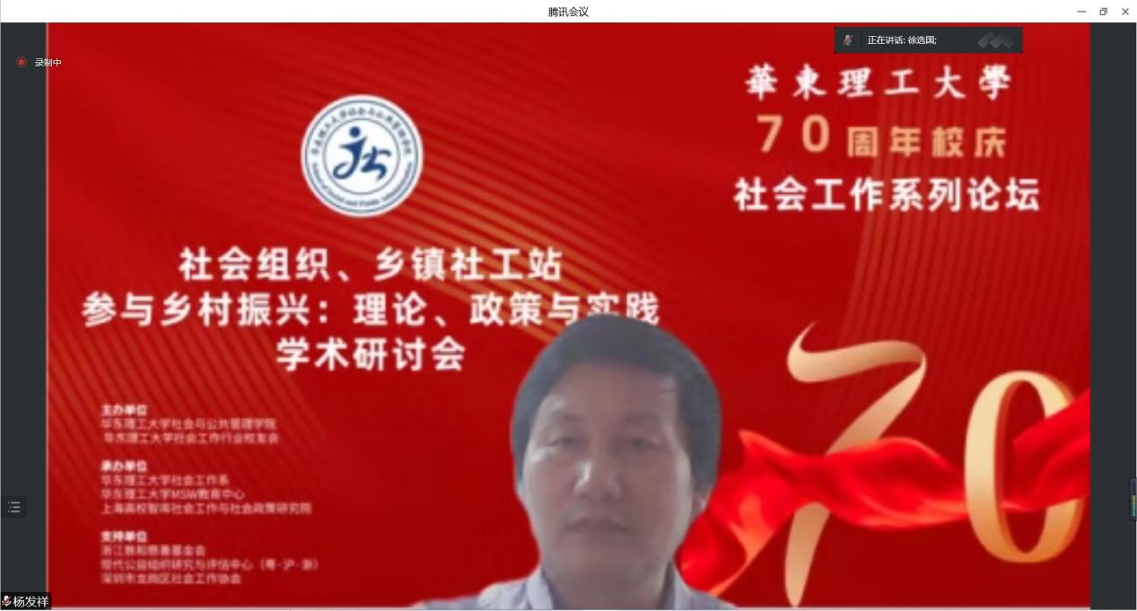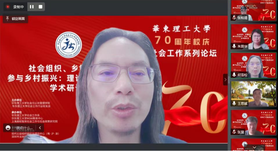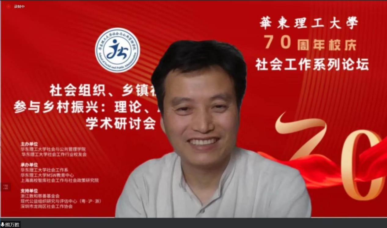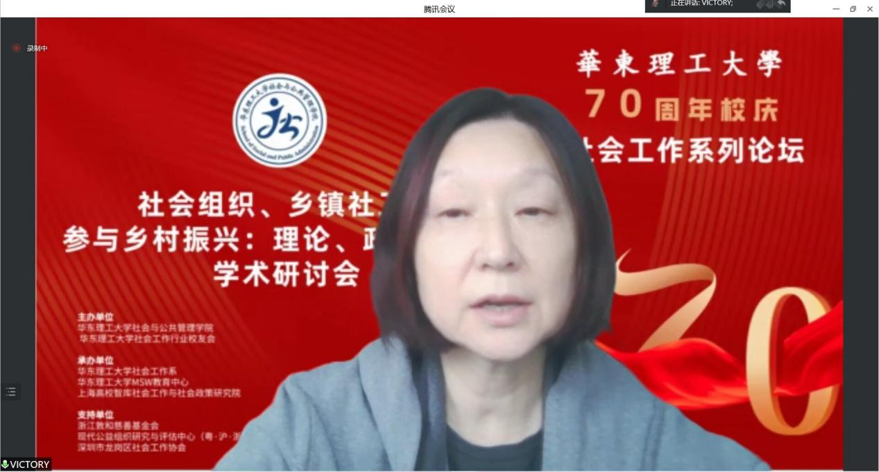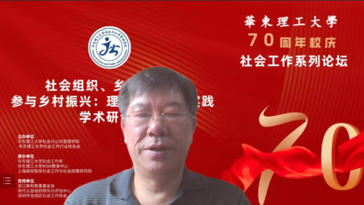 2022年6月12日,由BETVICTOR伟德、BETVICTOR社会工作行业员工会主办,BETVICTOR社会工作系、BETVICTORMSW教育中心、上海高校智库社会工作与社会政策研究院承办、浙江敦和慈善基金会、现代公益组织研究与评估中心(粤·沪·浙)、深圳市龙岗区社会工作协会联合支持下举办了“BETVICTOR70周年校庆社会工作系列论坛中主题论坛一:社会组织、乡镇社工站参与乡村振兴:理论、政策与实践”专题研讨会在腾讯会议室进行。本次会议邀请了王思斌、张和清、蒙昭平、张昱等十余位来自学术界和实务界的专家学者共同分享和探究。本次研讨会共分为四个环节:主题论坛+3个专题论坛。该会议以线上形式开展,通过智社平台和腾讯会议进行,共有3000余人参与了此次线上研讨会,会议取得了积极反响。