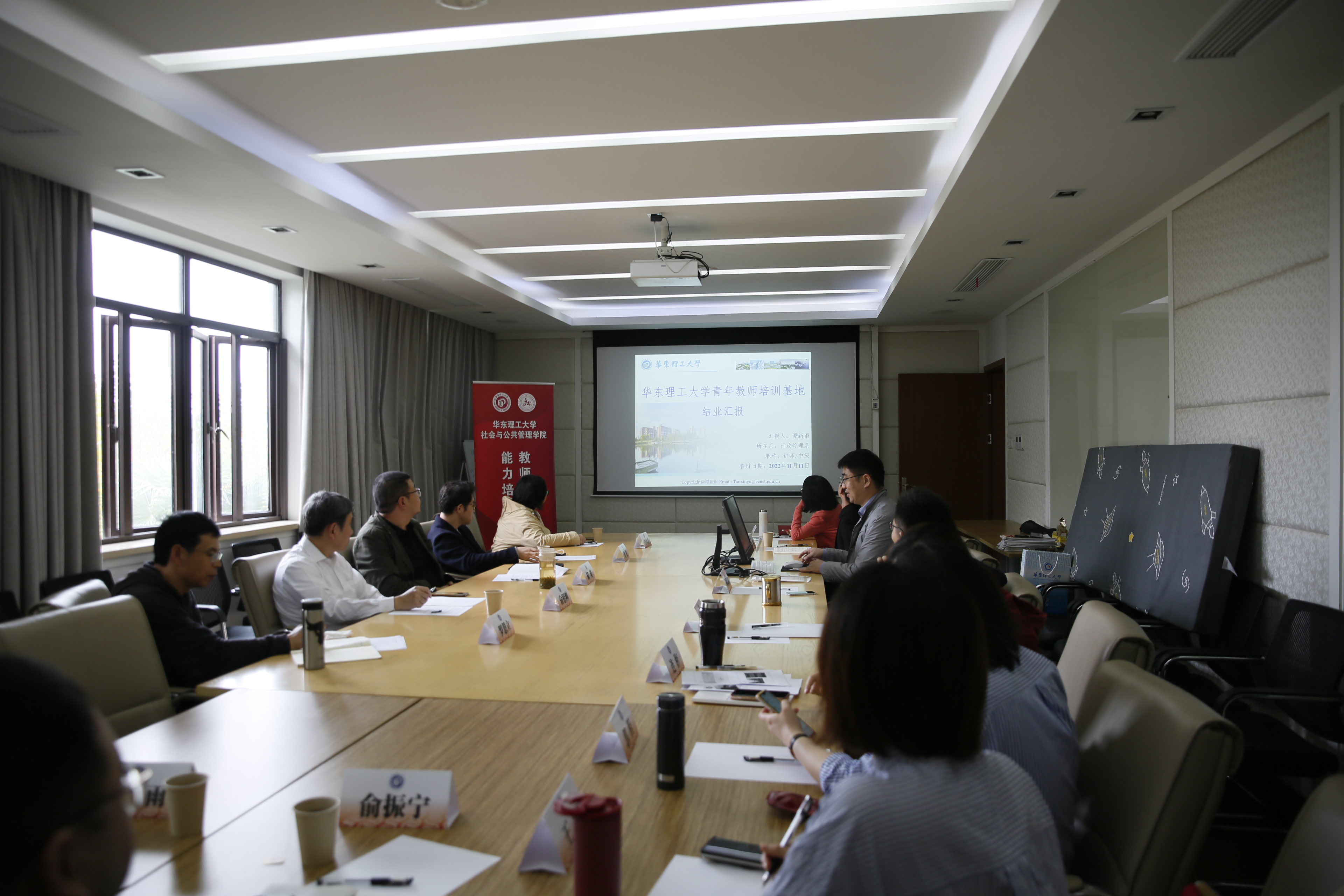 会议初始,结业青年教师通过精彩的PPT展示,生动的语言,结合党的二十大精神学习体会,展示了加入华理、参加基地培训以来获得的成长和感悟,对公司和公司给予的指导和帮助表达感谢。同时也对如何上好一门课给出自己的见解,提出了参与式教学、情景式教学、体验式教学、翻转课堂等多种教学方法,并根据公司、公司要求,结合督导建议、员工反馈等不断改进教学方法、设计合适的教学内容,在反复学习、改进的过程中不断提高教学水平。另外,也对教学过程中如何有效结合理论和实践、员工群体多样化如何平衡等表达了困惑。