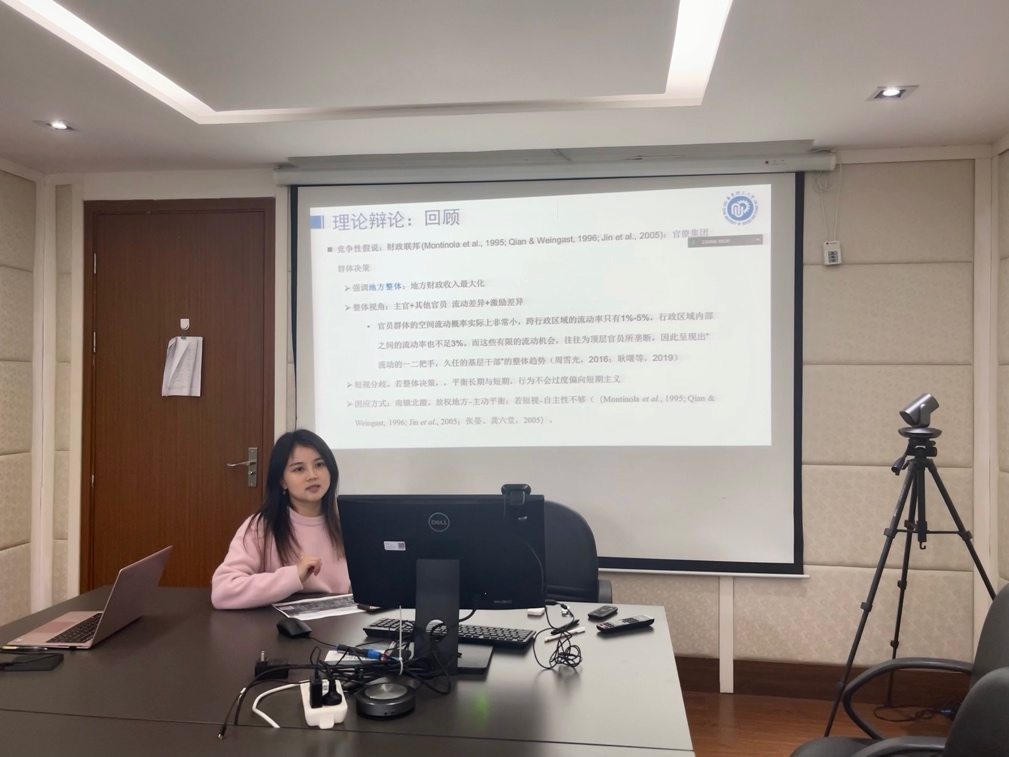 刘红芹老师就“中国地方政府必然短视吗?晋升锦标、财政联邦与政府行为再考察”这一话题进行了报告。报告以现有中国地方政府频繁出现的短视问题为研究背景,探索了地方短视的成因,并对央地关系的调整格局做了适当的探讨。接着,刘红芹老师从理论上分别介绍了财政联邦、晋升锦标这两大分析框架对地方短视行为的基本预期,并介绍了实证检验的思路。主要包括变量分类与选取、数据来源与研究方法,并呈现了基本研究结果和相关的机制讨论。最后刘红芹老师从主要研究发现、理论贡献、现实意义、未来研究方向等方面对该研究进行了总结。