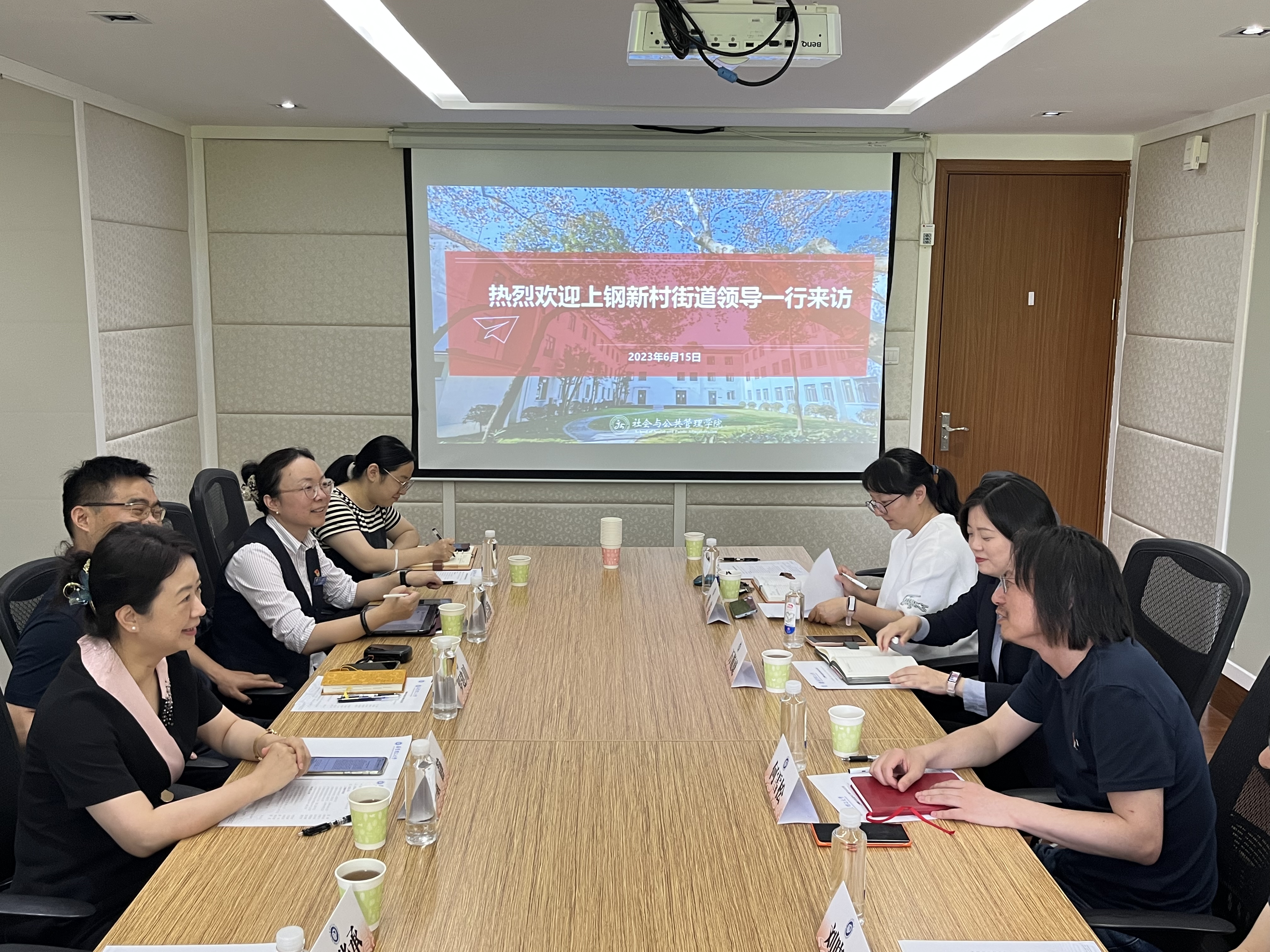 党委副书记万胤婕首先对上钢新村街道党工委副书记董静一行的到来表示欢迎,经过多轮互动,校地双方已经在员工实践、青年志愿、国情教育等方面达成了合作共识并开展了初步的活动,感谢街道为员工实践提供的机会。