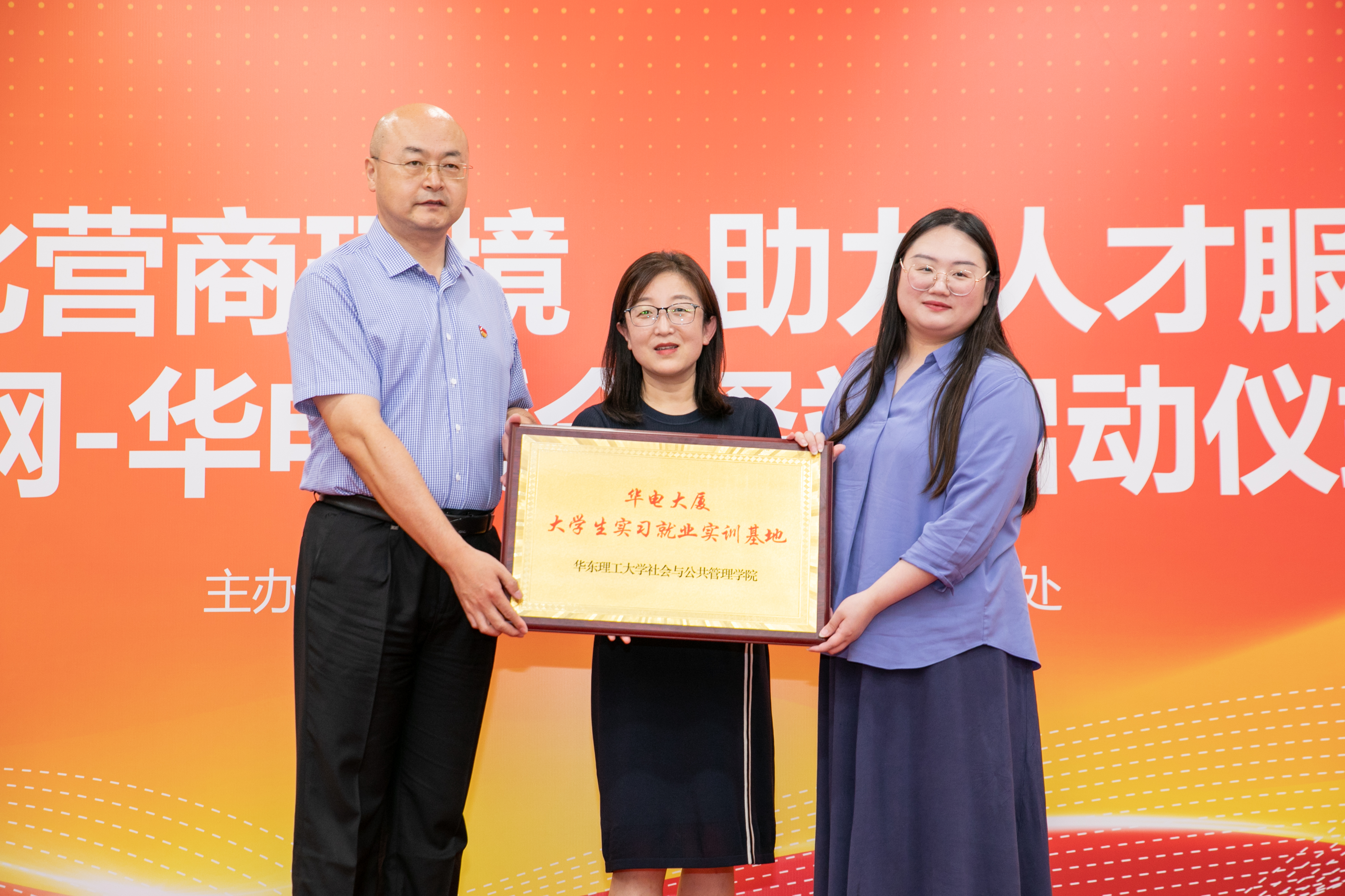 浦东新区人社局就业促进和社会保障处赵云瑞副处长为华电大厦老员工实习就业实训基地授牌。实习就业实训基地的建立,标志着社会公司就业培育工作的半径从校内向校外延申,基于校地合作探索新的员工就业发展辅助制度。