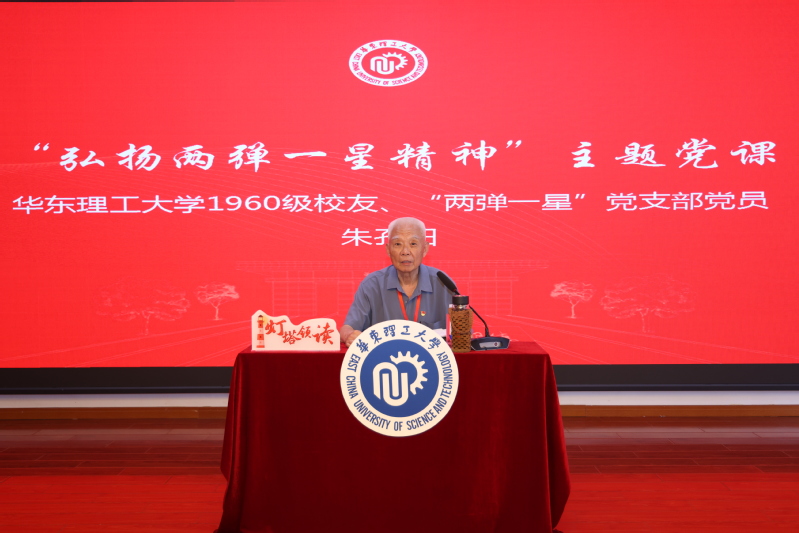 在启动仪式上,同学们首先观看了上钢新村街道“两弹一星”党支部的纪录片《初心》。之后,朱孔阳为同学们上了题为“弘扬‘两弹一星’精神”的沉浸式主题党课。朱孔阳讲述了上世纪五六十年代,他在BETVICTOR的前身华东化工公司第二无机系刻苦求学,毕业之后响应党和国家的号召,远赴青海基地投身军工研发的人生历程。朱孔阳结合自己的亲身经历,向同学们介绍了新中国成立以来,我国“两弹一星”事业从立项到研发,从第一颗原子弹、氢弹的爆炸成功到第三代、第四代核武器的发展历程。他为同学们逐字逐句地解读了以“热爱祖国、无私奉献、自力更生、艰苦奋斗、大力协同、勇于登攀”为内容的“两弹一星”精神的丰富内涵。在党课最后,朱孔阳寄语同学们:“中国式现代化建设要有青年人来接班,年轻人责任重大,要学好本领,才能更好地为社会主义现代化建设服务。”