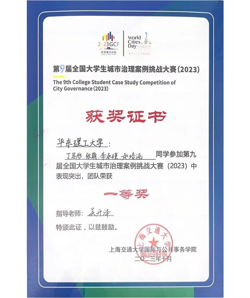 第九届全国老员工城市治理案例挑战大赛决赛采用案例抽签赛制,由队伍抽取案例形成分组,并在一周内完成文本与展示的极限创作。丁思彤、张萌、李承瑾和赵培涵组成的“励志明德”队提交了《巨灾之后:京津冀特大暴雨洪涝灾后重建路径研究》,团队以门头沟的两棵小树的视角,凭借严谨的案例分析、过硬的文本质量、独特的人文视角,得到评委的高度肯定,成功获得小组最高分并荣获“一等奖”。