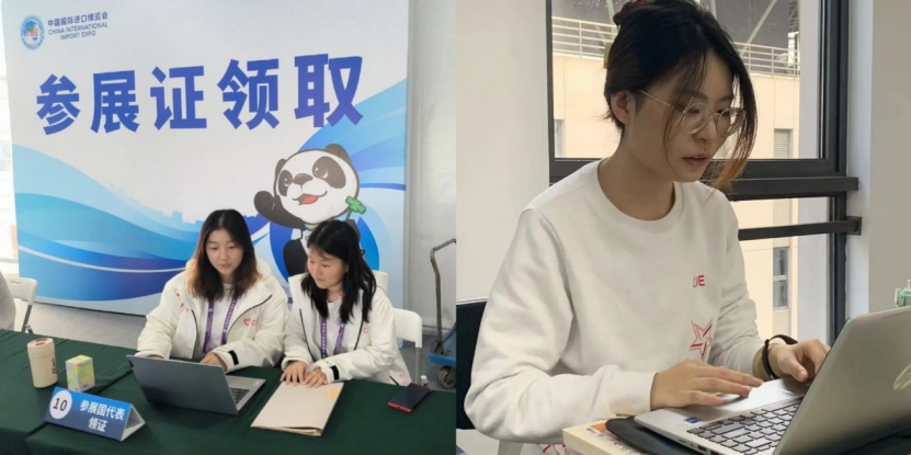 志愿者团队分布在装备展区服务处、人工智能服务讲解、志愿者辅助管理保障、“小叶子”体验官等多个岗位上,在进博会中主要负责引导讲解、处理现场咨询、媒体拍摄宣传等工作,为进博会的顺利推进提供基础工作保证。作为一场展示全球商品和服务的盛会,进博会已然成为中国与世界各国的经贸合作重要平台,小叶子们深知自身任务艰巨、意义重大,对此,每位社院“小叶子”都严格要求自己,踔厉奋发,不懈笃行。