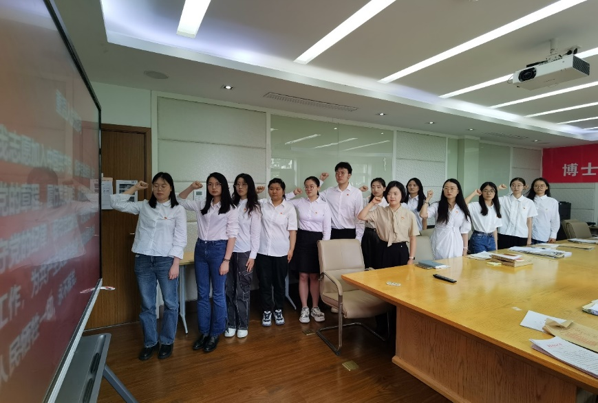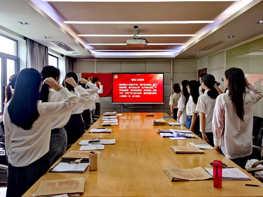 最后,万胤婕带领全体党员重温入党誓词,全体同志再次表达不忘初心、为人民服务的坚定誓言,庄严承诺保持对党忠诚的政治品格,坚守共产党人的精神追求,以实际行动书写无愧于时代的华彩篇章。