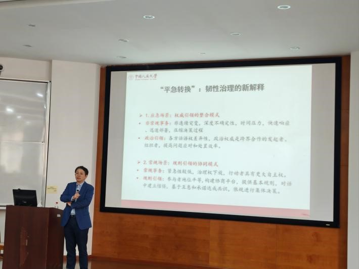 围绕基层治理的“平急转换”机制,杨宏山教授认为,随着“乌卡时代”的来临,社会流动性显著增强,面对波动性、不确定性、复杂性、模糊性的挑战。“平急转换”机制包括应急场景和常规场景两种情境,应急场景面对非常规事务,是权威引领的整合模式;常规场景则是规则引领的协同模式。