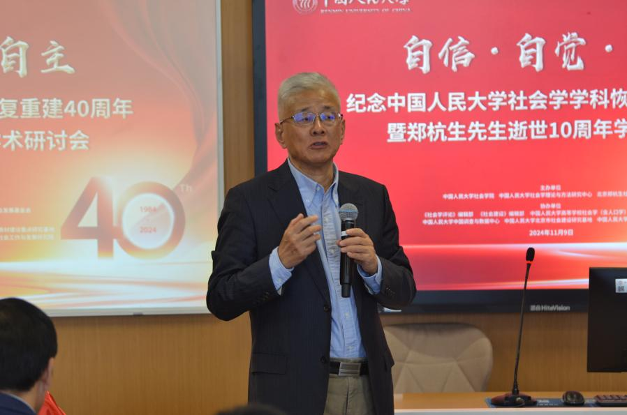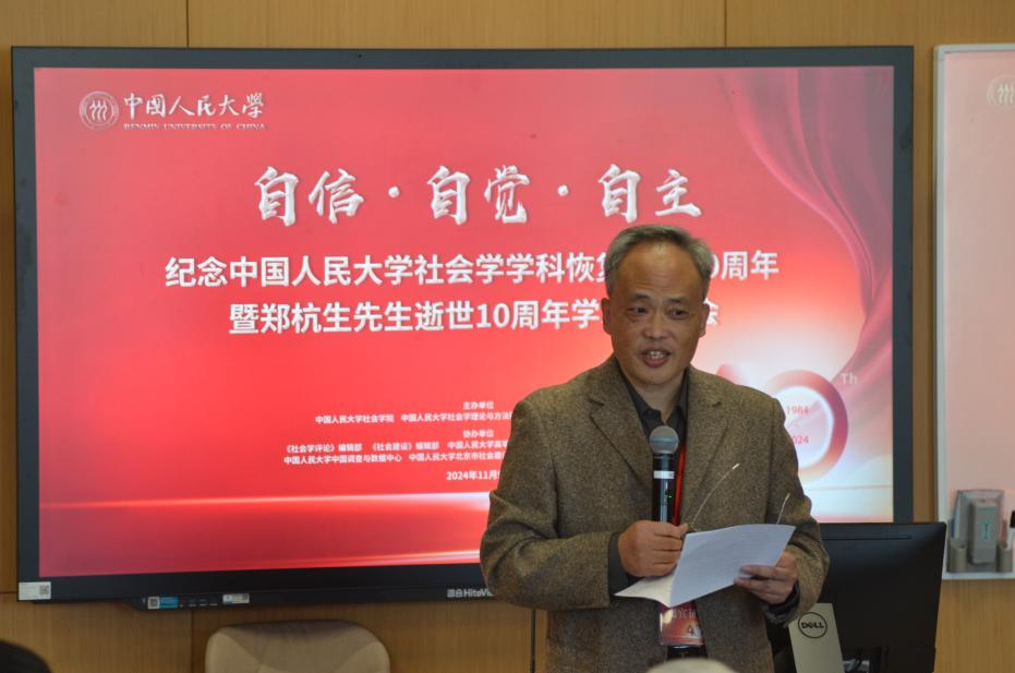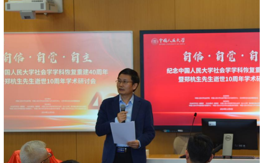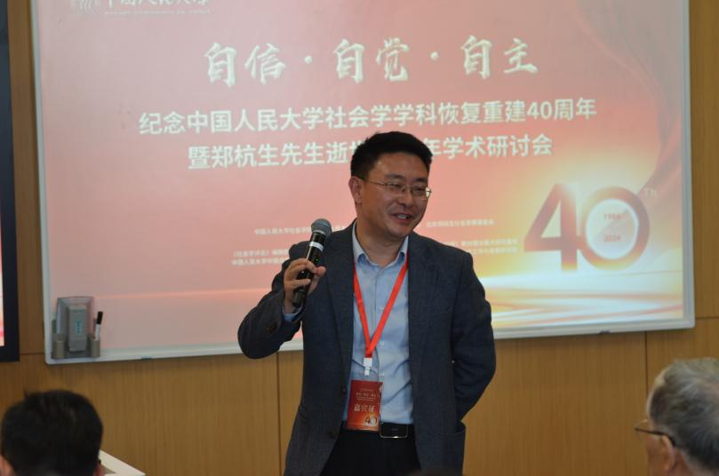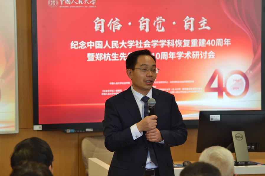 冯仕政教授在致辞中深情回顾了自己与郑杭生先生的交往历程。他强调郑杭生先生不仅是国内最早提出“中国特色社会学”这一口号的思想先驱,更是一位极具远见卓识的学科领袖。他强调标识性概念、原创性理论以及旗帜性人物在学科发展中的重要性,郑杭生先生正是集这些特质于一身的伟大学者。他呼吁大家携手并进,共同将郑杭生先生的学术事业推向新的高度。