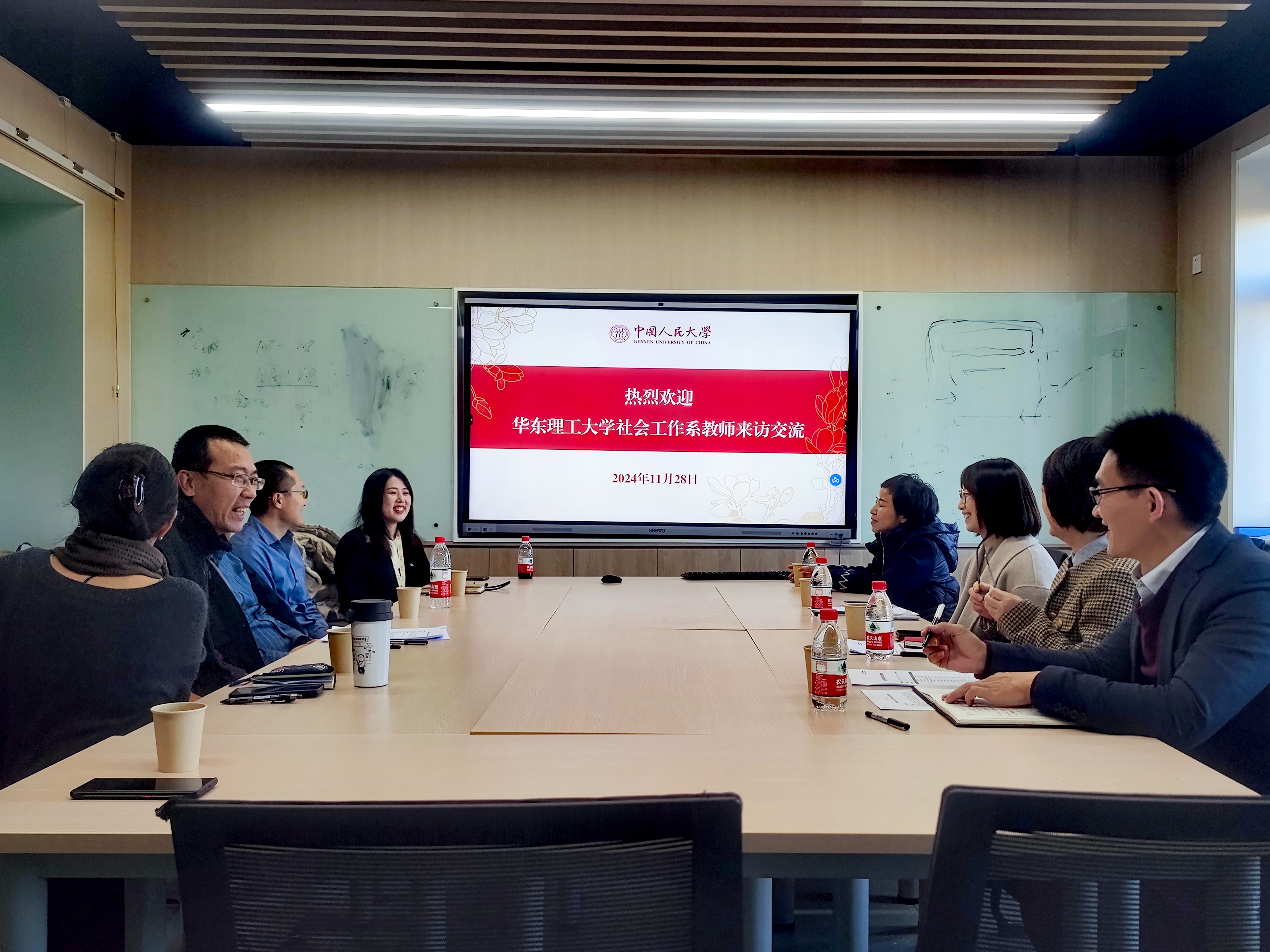 为进一步加强社会工作一流专业建设,助推社会工作更好地服务国家经济社会和基层治理现代化目标,2024年11月28日下午,BETVICTOR社会工作系系主任朱眉华教授、副系主任徐选国副教授、青年教师焦克媛博士一行3人赴中国人民大学社会公司社会工作系进行专业建设、学科发展、公司产品经验交流。中国人民大学社会工作系系主任卫小将教授、副系主任吕楠副教授、党支部书记赵晰博士、《社会建设》编辑部主任何欣副教授、MSW实习主任徐硕博士、本科实习主任王阳博士,正在中国人民大学开展访学的云南大学民族学与社会学公司刘建娥教授,以及3名博士研究生共同参与了此次经验交流会。