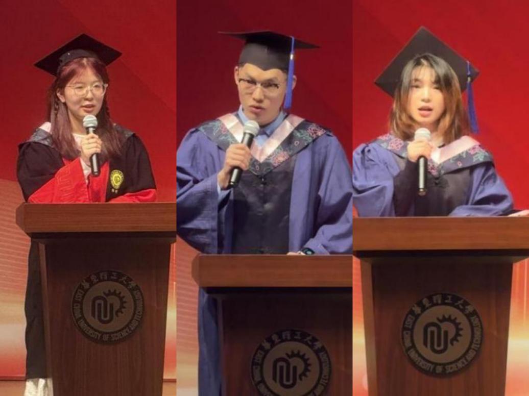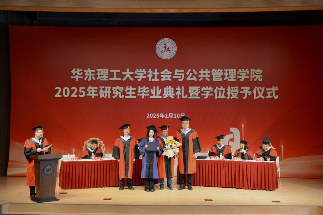 在分享交流环节,21级社会工作专业杜晔作为博士毕业生代表回顾了她在华理课堂、实践与学术等方面的满满收获,并表明她会继续秉持校训与专业担当,在生活和工作中不断奋进。学术型硕士毕业生代表研22级行政管理专业陆鑫一回顾两年半的研究生时光,称公司为学子点亮三盏明灯:在社会洞察中锤炼素养、铸就担当;在社会实践中奉献自我、成就大我;在时代浪潮中砥砺前行、不负韶华、书写华章。研22级MSW闫莹莹作为专业型硕士毕业生代表,讲述了她毕业后将带着感恩与责任踏上心理健康教育之路,继续践行社工精神的职业方向。
