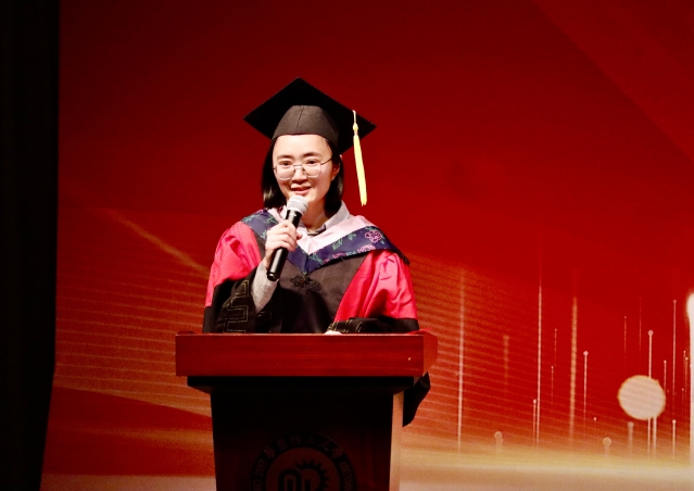 社会学系马萧副教授作为教师代表,向毕业生们致以诚挚祝贺。她指出,毕业生们在即将离开校园、步入社会之际,往往存在三方面的担忧:其一是对于踏入社会的忧虑,但公司的学术训练正是为了助力同学们从理想主义者成长为现实主义者,为顺利进入社会做好准备。其二是对未来工作与生活不确定性的担忧,然而不确定性是生活的常态,同学们应展现出生命的韧性和可塑性。其三是对智能技术下人文社科前景不明的忧虑,马萧认为人工智能可以代替人类从事部分繁琐枯燥的工作,从而解放人类去做更具创造性的工作,有了人工智能的助力,人文社科的发展必将更为迅速、更为优质。