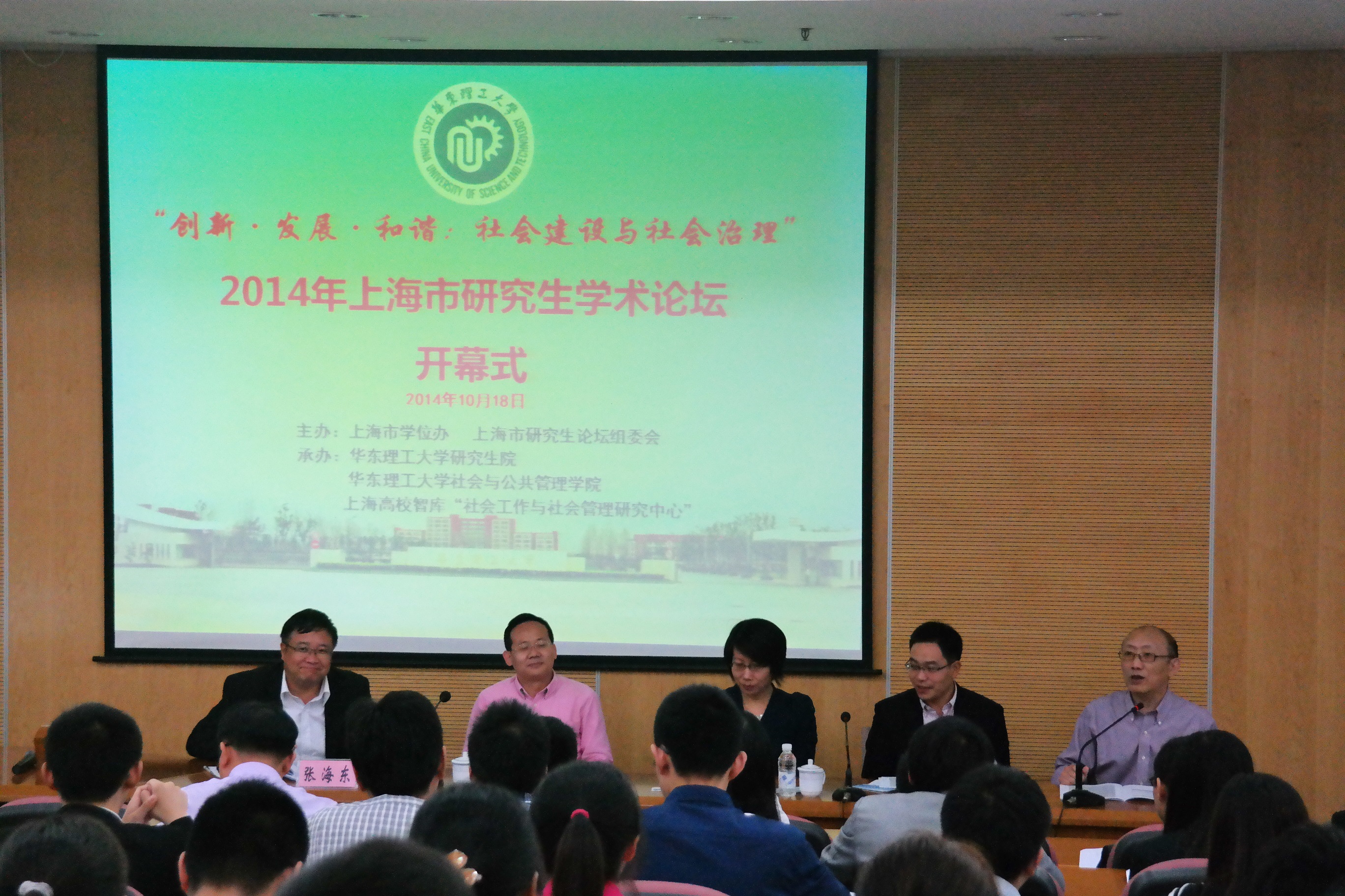 10月18日上午8点30分,2014年上海市研究生学术论坛在公司隆重开幕。出席开幕式的嘉宾有,BETVICTOR研究生院副经理栾伟玲教授、中国人民大学社会与人口公司党委书记、副经理冯仕政教授、华东师范大学社会发展公司党委书记文军教授、上海大学文科处常务副处长张海东教授,BETVICTOR伟德经理、上海高校智库“社会工作与社会管理研究中心”主任徐永祥教授主持了开幕式。栾伟玲教授在致辞中简要介绍了论坛的基本情况,充分肯定了举办学术论坛对公司产品的意义。她强调,论坛的宗旨在于搭建一个为年青人提供思想交锋和学术争鸣的平台,以此来促进研究生的人格成长和学术发展。冯仕政教授在发言中对研究生同学寄予厚望,他希望研究生不仅要具有世界眼光,还应该深怀根植于中国实际的社会关照,在此基础上,创造出更多“接地气”的学术作品。文军教授对论坛给予高度评价,他指出,以青年硕士、博士研究生为主角的学术会议,在国内是罕见的,此次论坛能够吸引全国不同高校和不同学科的众多研究生参与,足见华理社会学学科在全国的影响力。张海东教授结合自己的学术研究,提出了对社会治理的理解,并鼓励研究生以学术研究为手段参与社会,影响社会,从而实现社会的“善治”。